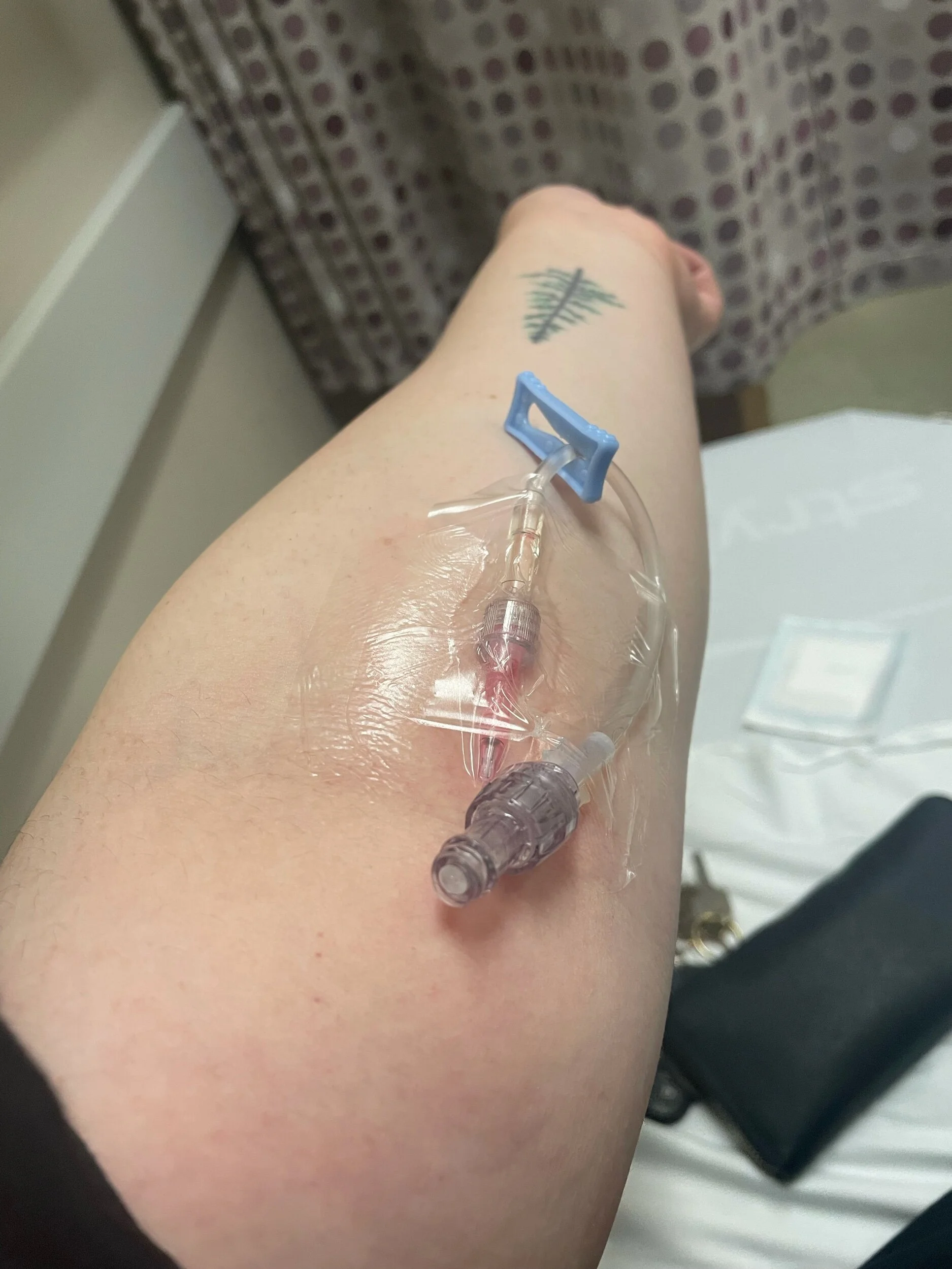 A nurse came in to take my blood pressure, and put a line in my arm for blood work. She said they may need to do more, so putting a line in was the easiest option. After that, the doctor came in to speak with me. I wish I could remember his name, because he was hilarious, and literally the best ER doctor I’ve ever had. During the series of questions, he asked if I smoked weed and I said no. He answered with “Whaaat? Why not, it might help”. He also explained that he wanted to do X Rays to make sure I didn’t “have a big tumor in the middle of my chest or anything”, and kept me and gummy grandma laughing the entire time.